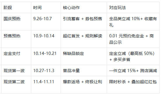 二、活动时间轴(贴合淘宝双 11 官方周期)